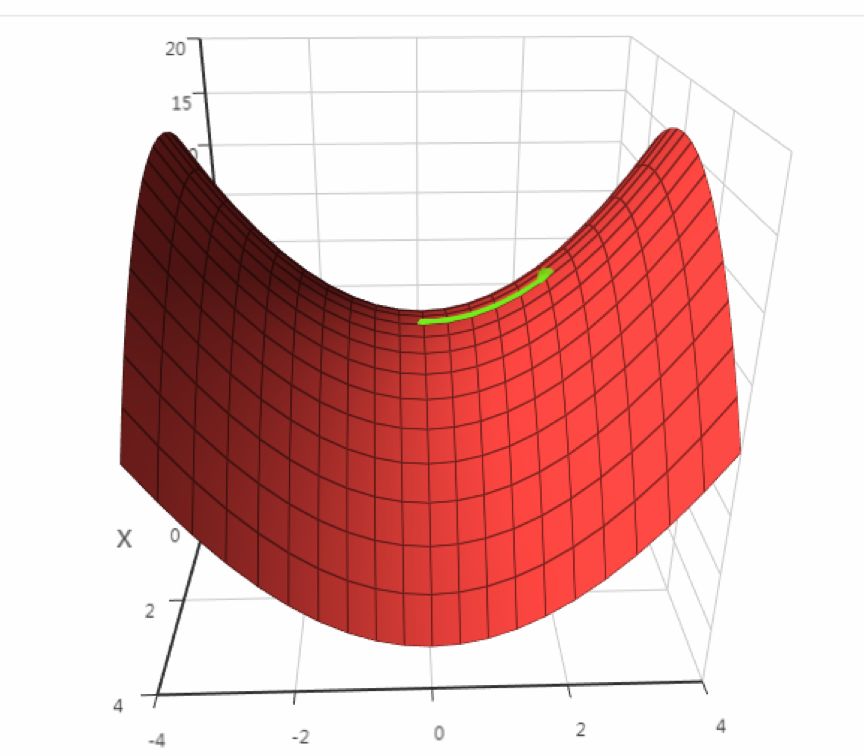 在导数为0的点处,函数可能不取极值,这称为鞍点,下图是鞍点的一个例子(来自SIGAI云端实验室):