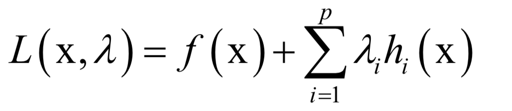 费马定理给出的不带约束条件下的函数极值的必要条件。对于一些实际应用问题,一般还带有等式或者不等式约束条件。对于带等式约束的极值问题,经典的解决方案是拉格朗日乘数法。