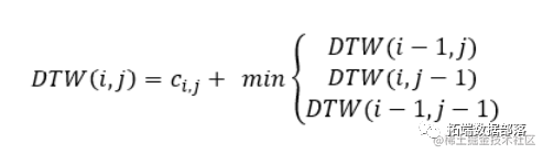 DTW 通过递归实现解决,为此可以找到成本最低的翘曲路径: