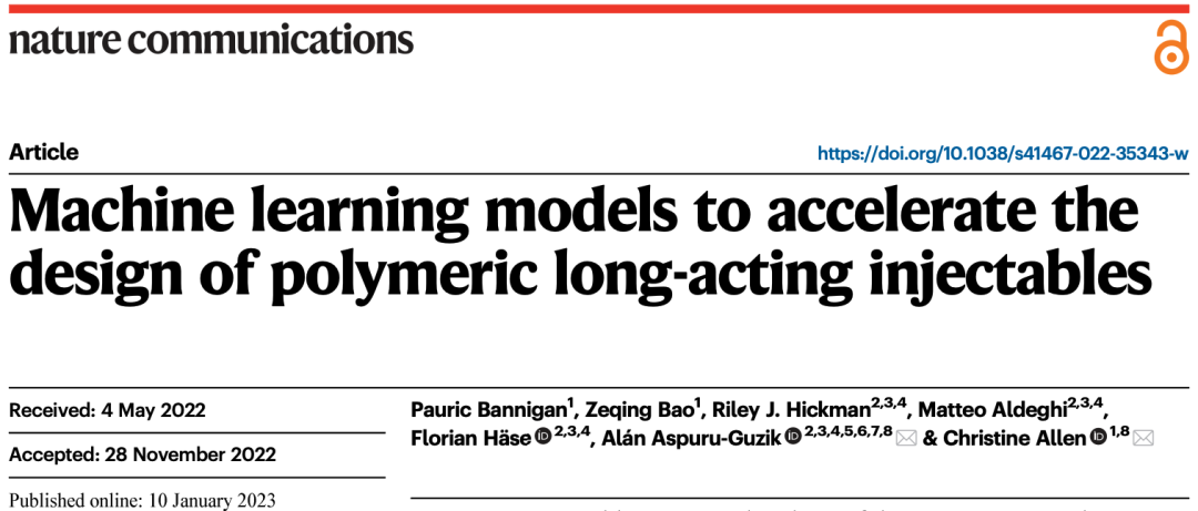 近期,来自多伦多大学 (University of Toronto) 的研究人员开发了一个机器学习模型,相关实验成果显示该模型能准确预测长效注射剂药物释放速率,有效加速长效注射剂研发。目前该研究已发布在《Nature Communications》期刊上,标题为「Machine learning models to accelerate the design of polymeric long-acting injectables」。