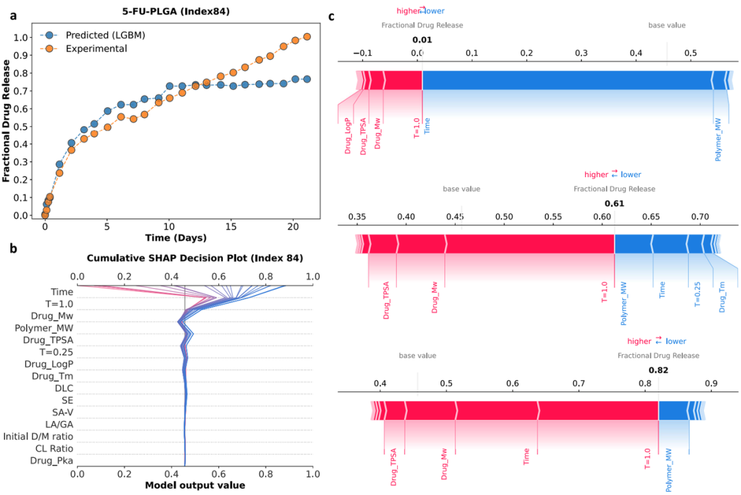 图 5:药物-聚合物预测和相应实验药物释放曲线对比