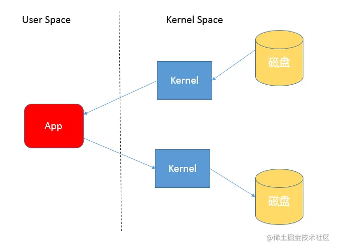 当我们使用输入输出流进行读写时,实际上是进行了多次上下文切换,比如应用读取数据时,先在内核态将数据从磁盘读取到内核缓存,再切换到用户态将数据从内核缓存读取到用户缓存。