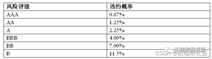 违约损失率(loss given default, LGD):违约发生时风险暴露的损失程度,对应于债项评级。