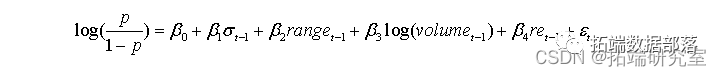 例子:从中证800中任意抽取一只股票,选取2012年至今的数据,构建如下指标,每60天的VaR(置信水平75%),每60天的波动率,每60天的累积交易量,每60天的离差(最大减最小),然后计次日的收益率低于昨日收盘算出来的VaR为违约事件。试使用如下的Logit模型拟合违约概率: