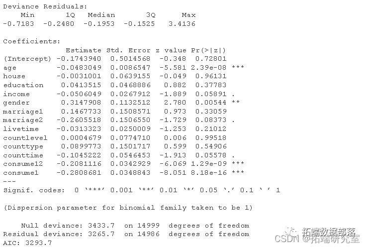 #使用训练样本估计Logit模型模型估计出的结果如下: