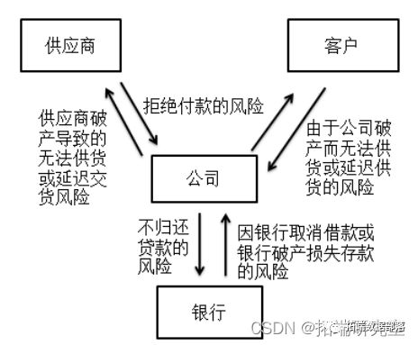 信用风险其实包含了很多维度的风险,其变化经常是难以预计的,但在商业社会中,信用风险往往具备双向性,其变化的方式通常服从下图所示的模式: