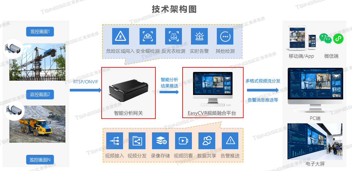 人工智能技术已经越来越多地融入到视频监控领域中,近期我们也发布了基于AI智能视频云存储/安防监控视频AI智能分析平台的众多新功能,该平台内置多种AI算法,可对实时视频中的人脸、人体、车辆、物体等进行检测、跟踪与抓拍,支持人脸结构化数据、车辆结构化数据、场景检测类算法、行业类检测算法、人员行为类检测算法等。感兴趣的用户可以前往演示平台进行体验或部署测试。