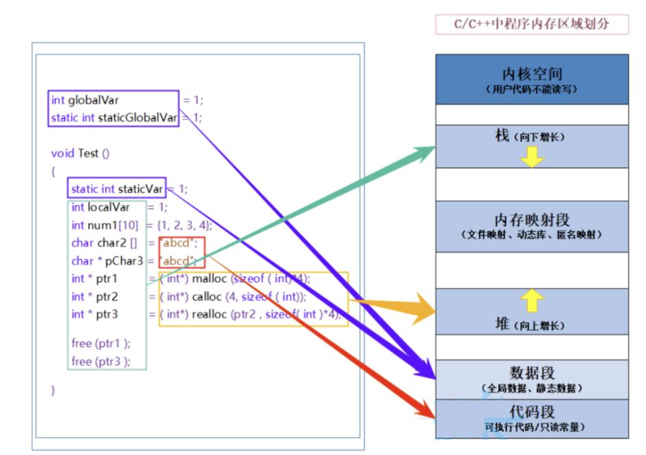 C/C++中的内存布局,不得不提的是数据的存储类别!数据在内存中的位置取决于它的存储类别。一个对象是内存的一个位置,解析这个对象依赖于两个属性:存储类别、数据类型。