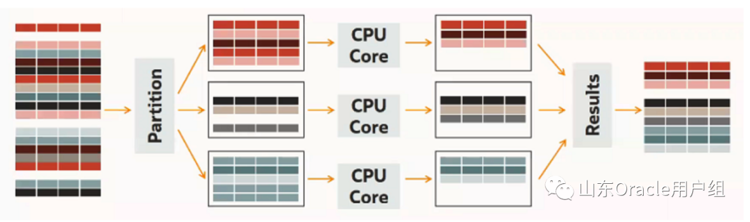 HeatWave 大规模并行架构使用节点间和节点内数据分区。HeatWave 集群中的每个节点以及节点中的每个 CPU 核心都并行处理分区数据。HeatWave 能够扩展到数千个核心。这种大规模并行架构与高扇出、工作负载感知分区相结合,可加速查询处理。