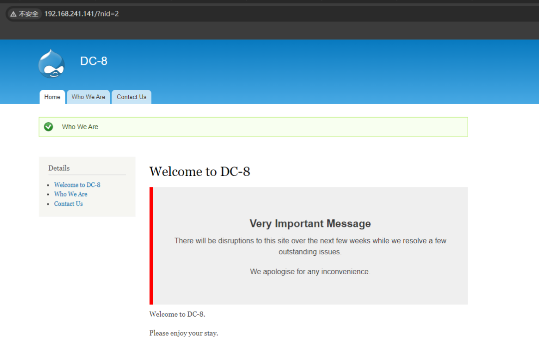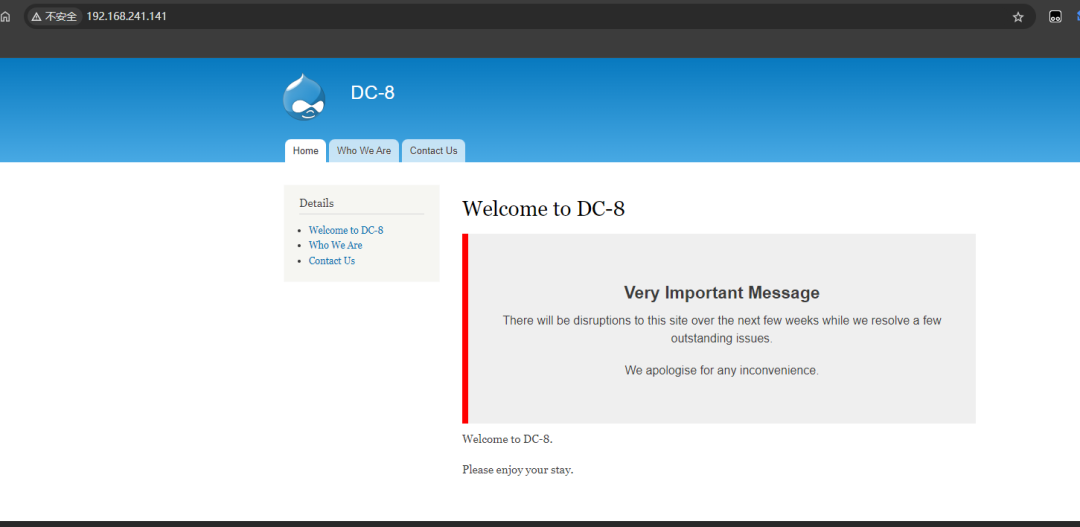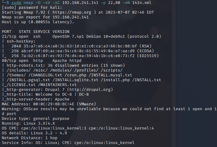 综上信息搜集可以发现,开放22和80端口,服务器为Linux,web中间件为Apache,框架为Drupal