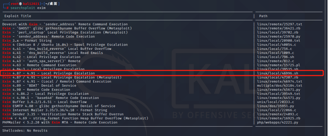 使用searchsploit命令搜索exim相关漏洞