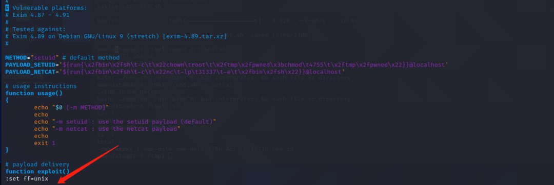 然后根据脚本提示 进行提权 发现提权失败!!!可能是格式问题,然后重新上传和下载