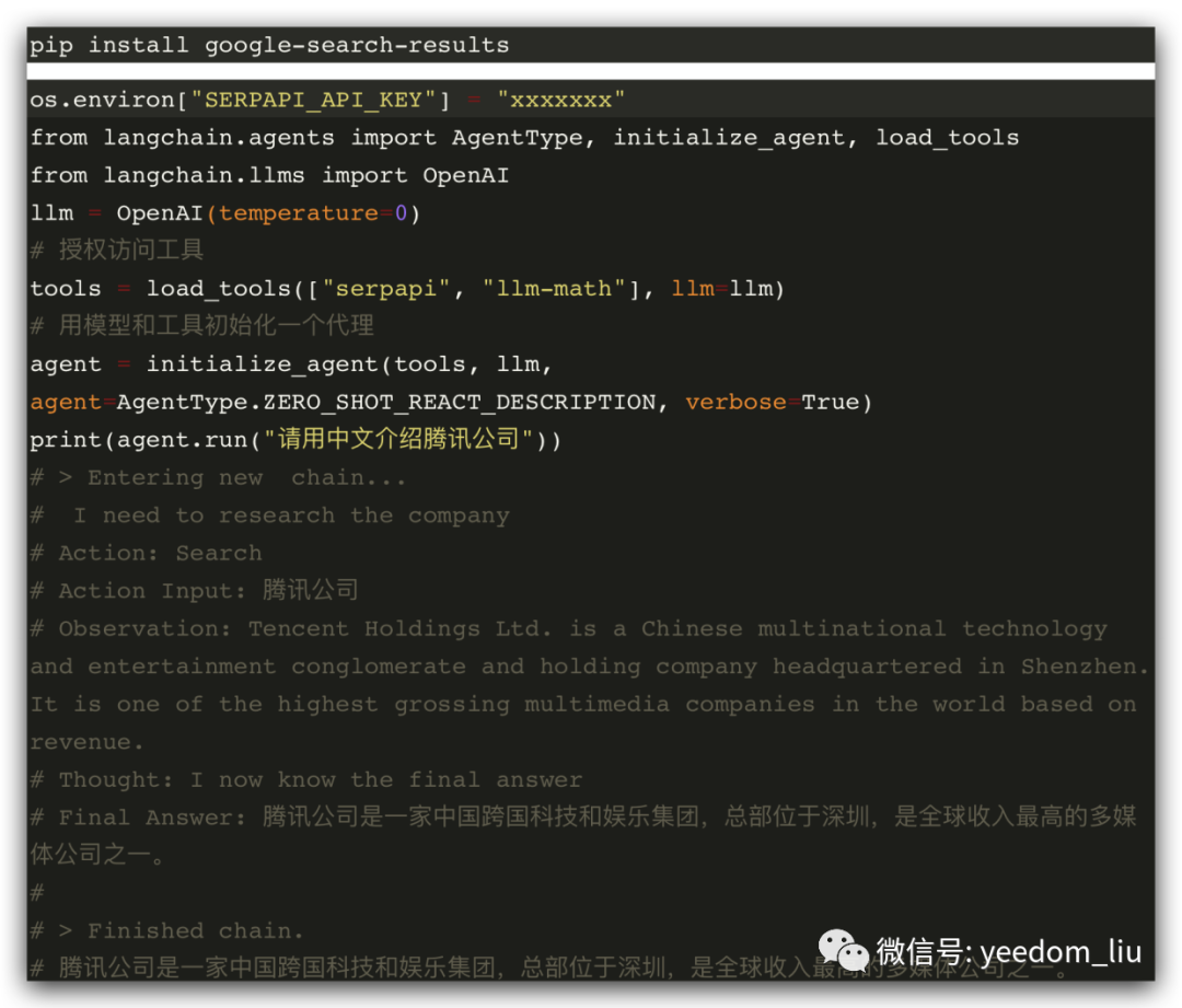 在本次例子中使用SerpAPI来搜索引擎