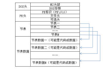 在PE文件中,代码,已初始化的数据,资源和重定位信息等数据被按照属性分类放到不同的Section(节区/或简称为节)中,而每个节区的属性和位置等信息用一个IMAGE_SECTION_HEADER结构来描述,所有的IMAGE_SECTION_HEADER结构组成了一个节表(Section Table),节表数据在PE文件中被放在所有节数据的前面。