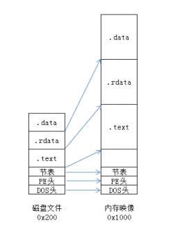 节区的偏移: 节的起始地址在磁盘文件中是按照IMAGE_OPTIONAL_HEADER结构的FileAhgnment字段的值对齐的,而被加载到内存中时是按照同一结构中的SectionAlignment字段的值对齐的,两者的值可能不同,所以一个节被装入内存后相对于文件头的偏移和在磁盘文件中的偏移可能是不同的。