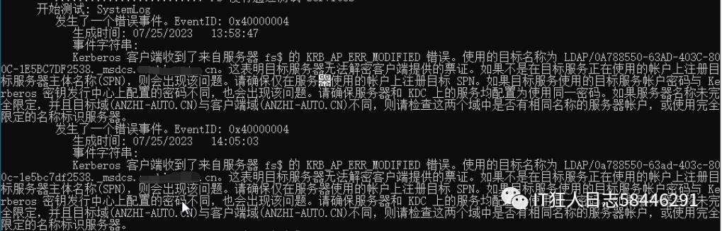再次执行dcdiag命令,KnowsOfRoleHolders测试顺利通过,但是SystemLog测试还是没能通过,EventID:0x40000004