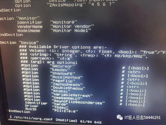 Vi /etc/X11/xorg.conf 修改配置文件: