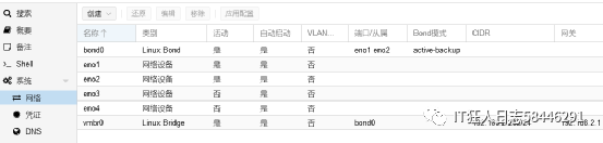 当然还有最后一步,WEB登录PVE管理界面后,必须创建一个名为vmbr0的Linux Bridge,并且把网卡添加进去,设置IP地址,点击“应用”否则虚拟机就无法联网了。