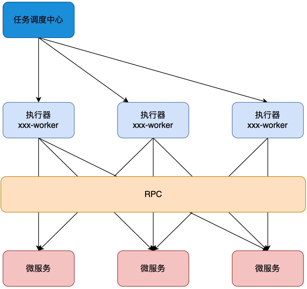 所以一般这个时候就需要引入把任务单独拆分出一个微服务系统,一般可以叫做 xxx-worker 系统,他们就是专门处理任务的一个个执行器。把这些执行器注册到任务调度中心,由任务调度中心统一管理各项任务的执行。这样如果有一个任务在一个算力执行器上失败或者说执行器宕机了,那么可以把任务迁移到其他算力执行器上执行。这就是分布式的好处。