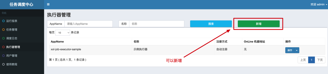执行器的作用,就是让 xxl-job-admin 这个任务调度系统,调用注册上来的执行器完成任务的执行。客户端需要配置好这里的执行器名称才能注册上来。你可以根据自己的需要新增新的执行器,也可以在测试的时候使用默认的这个执行器名称。