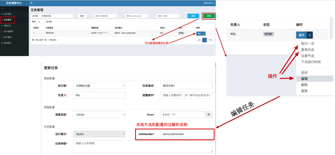 任务的作用,就是执行器下具体的执行方法,按照配置的时间下发到任务中执行。