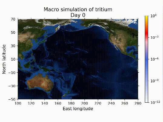 那么,福岛核污水离我们到底有多远?为了回答这一问题,清华大学的研究团队对福岛核污水的扩散过程进行了模拟,并以动画的形式展现了污水中主要放射性物质——氚的扩散过程。