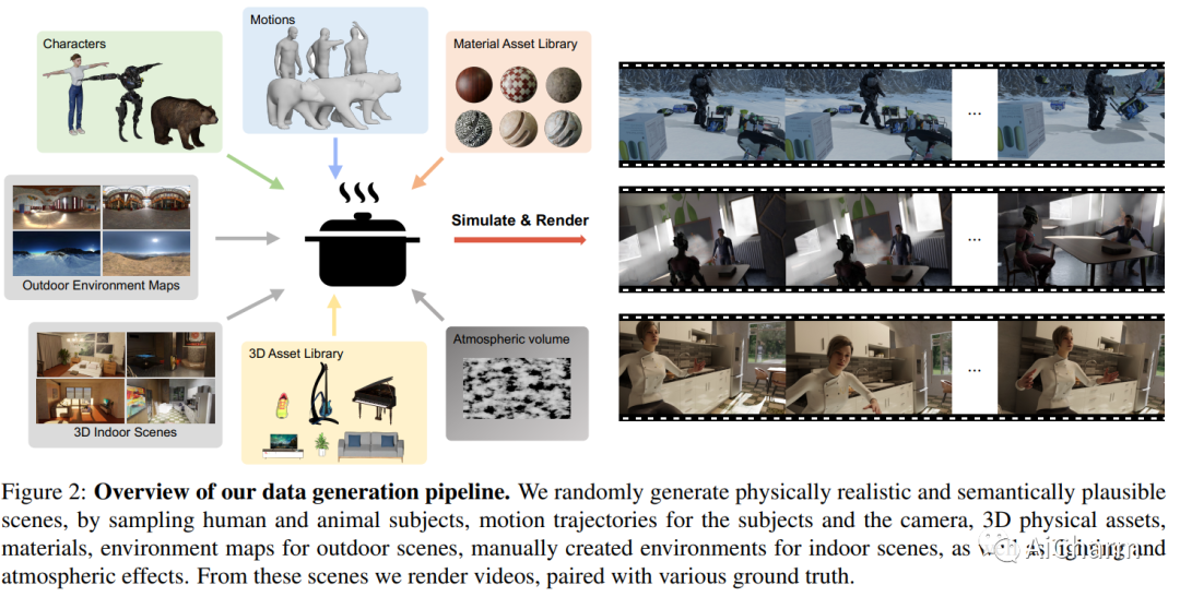 我们引入了 PointOdyssey,一个大规模合成数据集和数据生成框架,用于长期细粒度跟踪算法的训练和评估。我们的目标是通过强调具有自然运动的长视频来推进最先进的技术。为了实现自然主义的目标,我们使用真实世界的动作捕捉数据来制作可变形角色的动画,我们构建 3D 场景来匹配动作捕捉环境,并使用通过真实视频上的运动结构挖掘的轨迹来渲染摄像机视点。我们通过随机化角色外观、运动轮廓、材质、照明、3D 资产和大气效果来创建组合多样性。我们的数据集目前包括 104 个视频,平均长度为 2,000 帧,对应注释比之前的工作多了几个数量级。我们证明现有方法可以在我们的数据集中从头开始训练,并且优于已发布的变体。最后,我们对 PIPs 点跟踪方法进行了修改,大大拓宽了其时间感受野,从而提高了其在 PointOdyssey 以及两个现实世界基准上的性能。