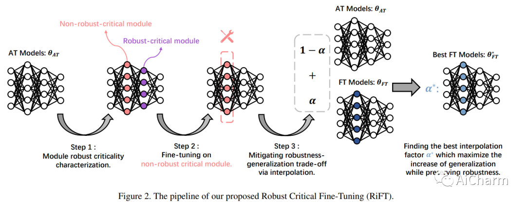 深度神经网络容易受到对抗性例子的影响,在关键应用中构成重大安全风险。对抗训练(AT)是一种行之有效的增强对抗鲁棒性的技术,但它通常以泛化能力下降为代价。本文提出了鲁棒性关键微调(RiFT),这是一种在不影响对抗鲁棒性的情况下增强泛化性的新方法。RiFT 的核心思想是通过在其非鲁棒关键模块上微调经过对抗训练的模型来利用冗余能力来实现鲁棒性。为此,我们引入了模块鲁棒临界性(MRC),这是一种评估给定模块在最坏情况权重扰动下对模型鲁棒性的重要性的度量。使用这种方法,我们将具有最低 MRC 值的模块识别为非鲁棒关键模块,并对其权重进行微调以获得微调权重。随后,我们在对抗训练的权重和微调权重之间进行线性插值,以得出最佳的微调模型权重。我们展示了 RiFT 在 CIFAR10、CIFAR100 和 Tiny-ImageNet 数据集上训练的 ResNet18、ResNet34 和 WideResNet34-10 模型上的功效。我们的实验表明,\ 方法可以将泛化和分布外稳健性显着提高约 1.5%,同时保持甚至稍微增强对抗性稳健性。代码可从此 https URL 获取。