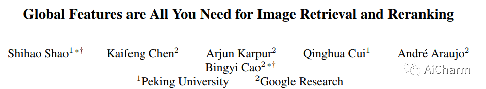 1.Global Features are All You Need for Image Retrieval and Reranking(ICCV 2023)
