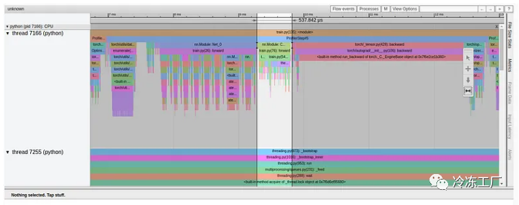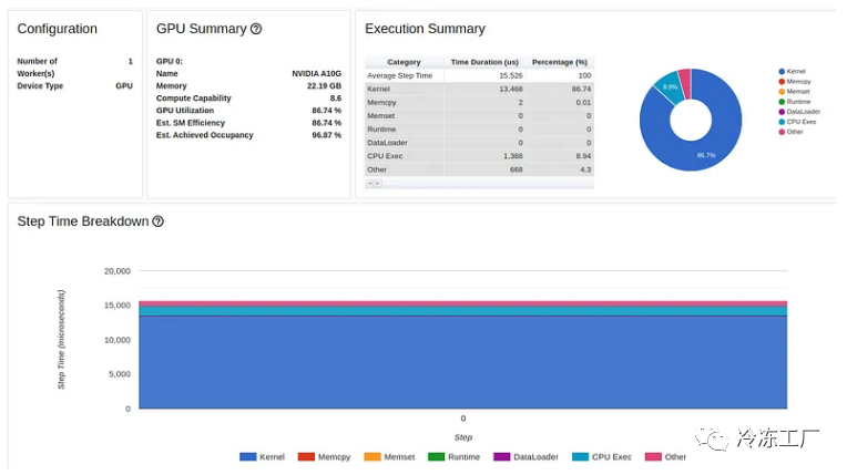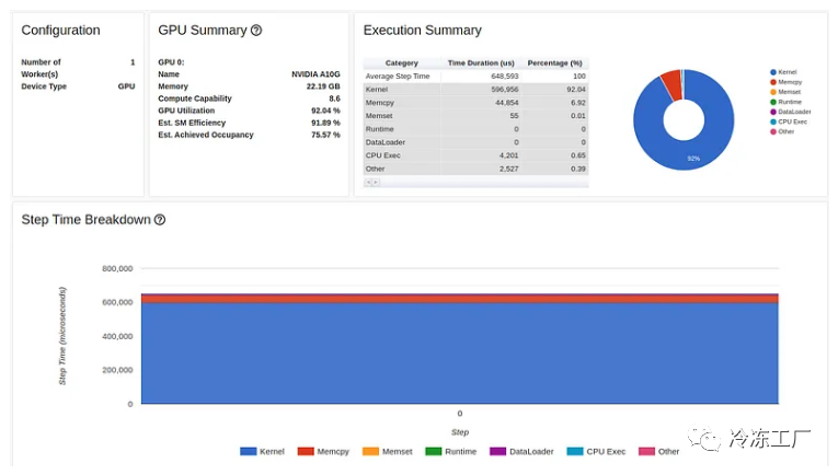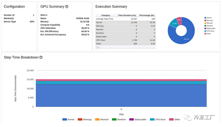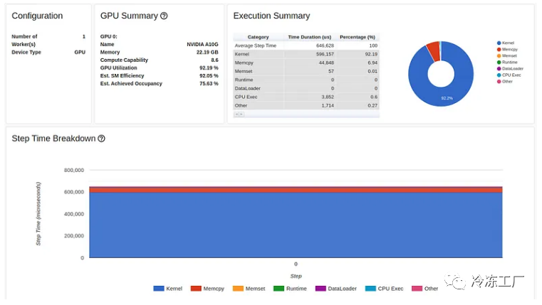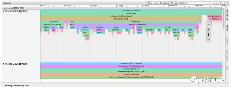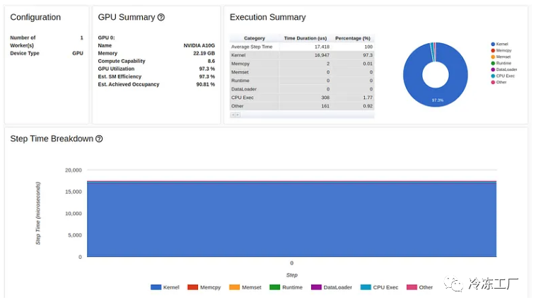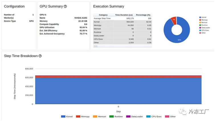 正如我们所看到的,我们的 GPU 利用率相对较高,为 92.04%,步长为 216 毫秒。(正如我们之前的文章中一样,torch-tb-profiler 0.4.1 版本中的概述总结了所有三个训练步骤的步骤时间。)仅从这份报告中,您可能不会认为我们的模型有任何问题。然而,性能报告的跟踪视图讲述了一个完全不同的故事: