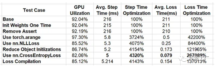 我们首先看到的是包含“OptimizedModule”和“dynamo”的术语的出现,它们表明了 torch.compile 的使用。我们还可以看到,在实践中,模型编译并没有减少损失函数加载的内核数量,这意味着它没有识别任何额外内核融合的机会。事实上,在我们的例子中,损失编译实际上导致损失函数的前向传递时间从 79 微秒增加到 154 微秒。看来 CrossEntropyLoss 还不够丰富,无法从这种优化中受益。