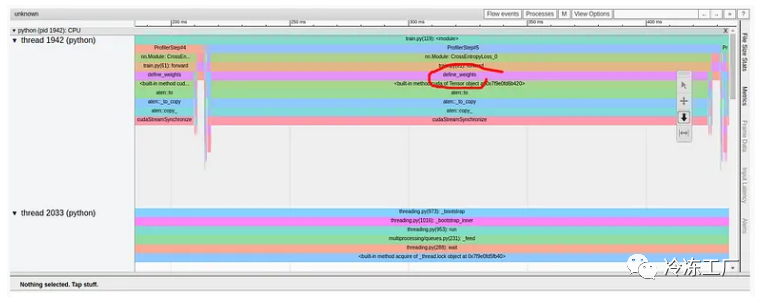 添加标签可以帮助我们识别权重定义,或者更准确地说,将权重复制到 GPU 中,作为有问题的代码行。