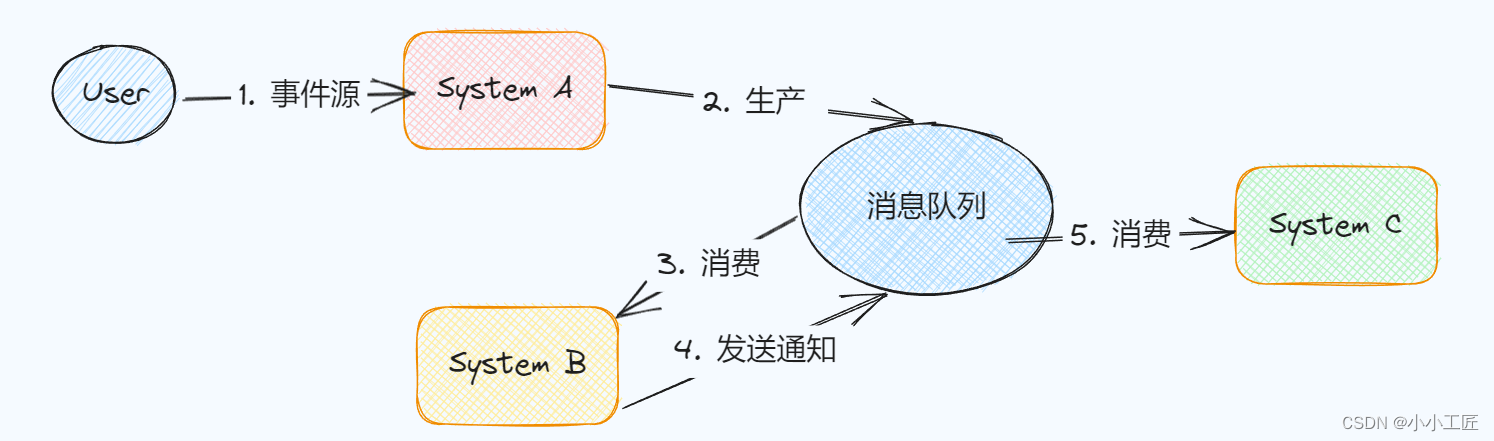 在事件驱动架构中,系统中的各个部分可以产生、发布、捕获和响应事件,这些事件可以是状态变化、用户操作、消息等等。事件驱动架构的主要思想是通过事件来触发和协调不同组件的行为,使系统更加灵活、松耦合和可扩展。