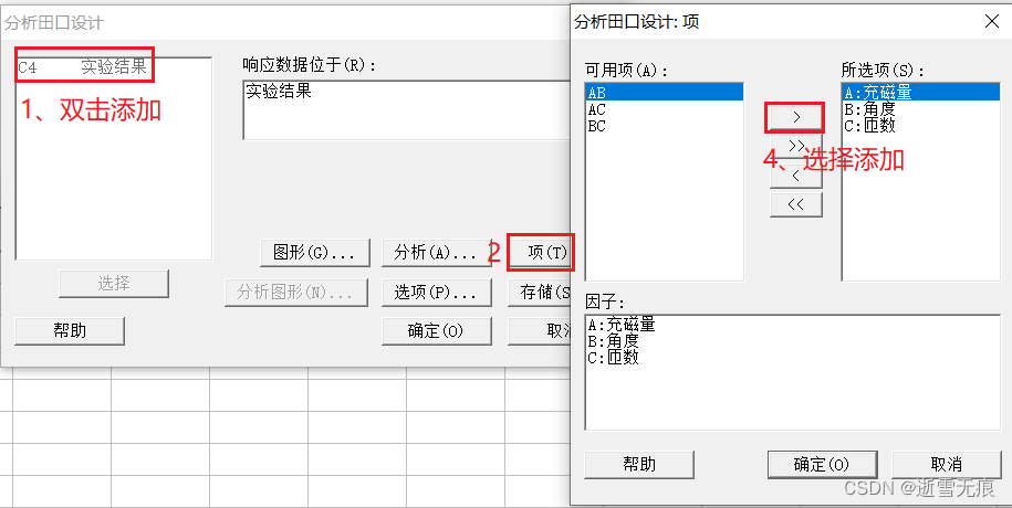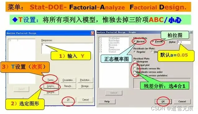 T设置:将需要考察的项目列入模型——包括所有的主效应和二阶项,如A B C AB AC BC,但不考察三阶及以上的项,如ABC。