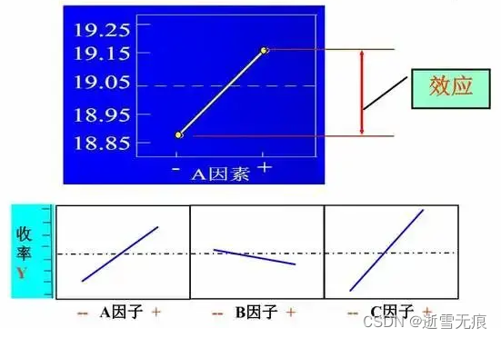 效应:某因子由于其水平的变化而给Y带来的影响,以其平均值的极差表示。