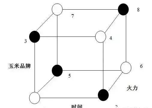 试验设计的主线是根据因子的取值范围,进行多种参数组合,如下图为两水平试验组合,形成多次试验的方案,依次进行试验后,通过试验结果分析,确定哪一种参数组合是最优的。