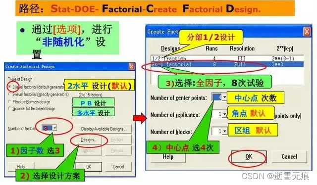 中心点设置好:2~4个(不是必须的,试验次数也将相应增加)。