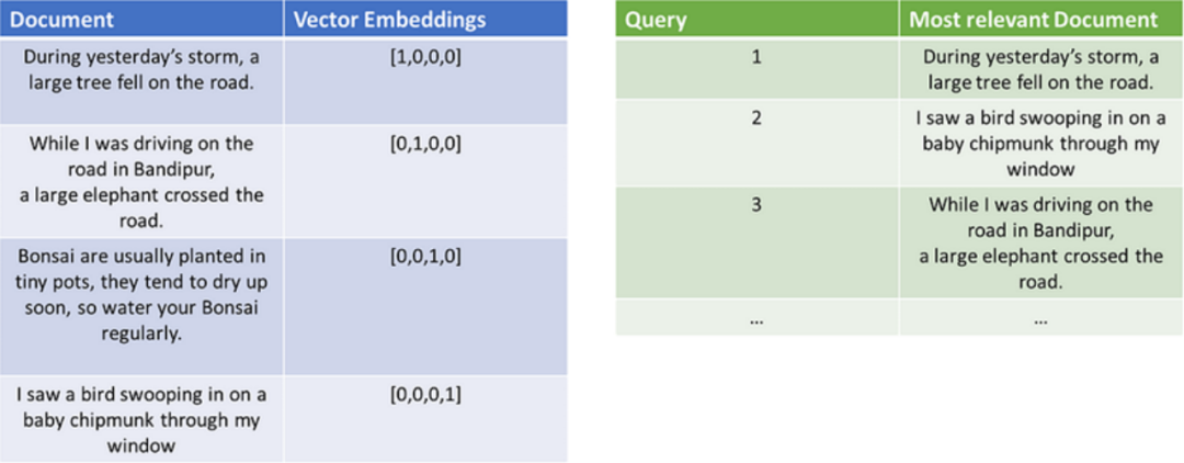 矢量搜索现在在所有的搜索中都很普遍(谷歌、必应,以及您最喜欢的搜索引擎)。想一想,如果您的整个搜索数据库中只有这4 个文档,您可以问这样一个问题:"请告诉我关于一棵大树的事情。您可以问这样一个问题:"请告诉我关于一棵大树的事情"。