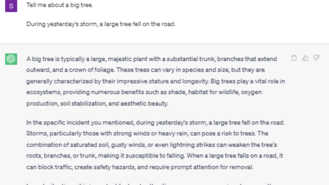 这是一个问题。ChatGPT显然缺少及时相关的背景信息,而这对于做出明智的决策至关重要。