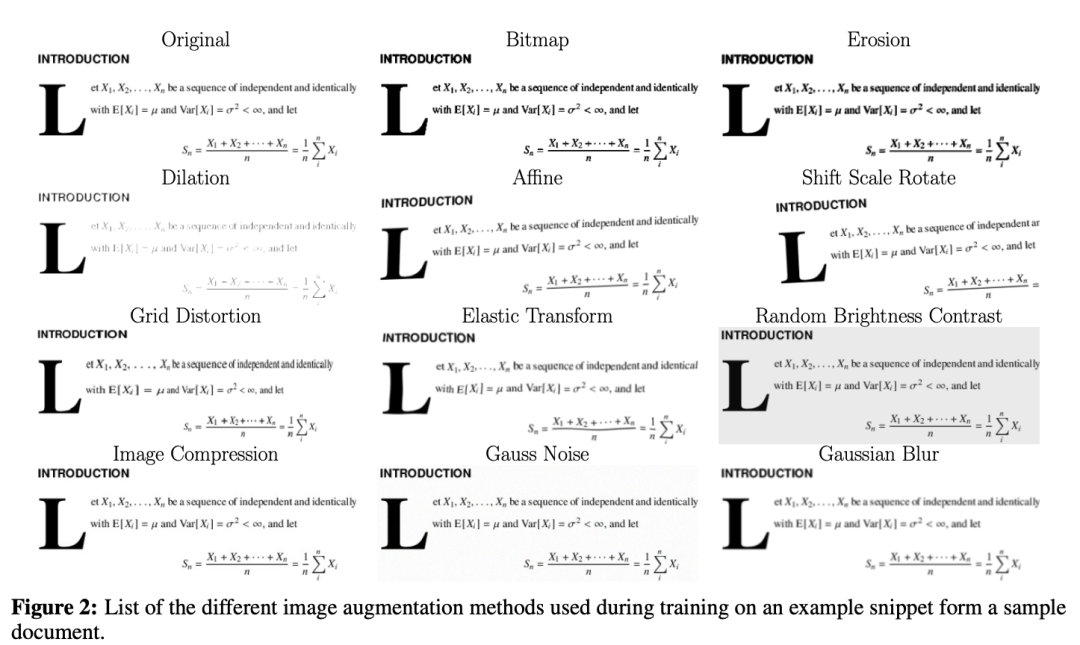 由于研究仅使用数字生成的学术研究论文,因此需要采用多种变换来模拟扫描文档的缺陷和可变性。