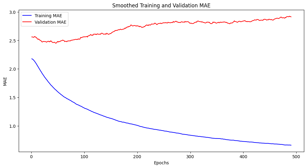 epochs = range(1, len(smooth_mae)+ 1) # 作为横轴