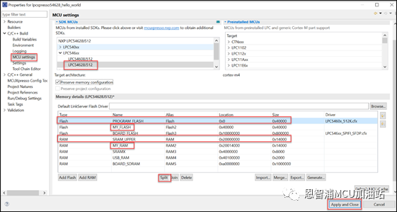 打开工程属性设置界面,在MCU settings选项中分区出MY_FLASH与MY_RAM两个区用于测试,可以自定义这两个区的大小,如下所示: