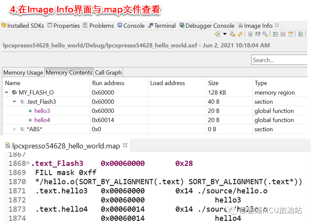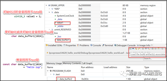 使用MCUXpressoIDE自带的Image Info窗口来查看数组存放位置: