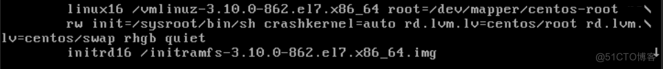 grub>linux16 /vmlinuz-xxxxxx root=/dev/mapper/centos-root # tab键补全 ,根分区已实际为准