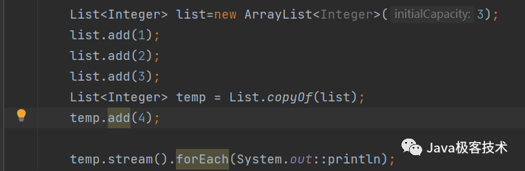 JDK10 给 java.util 包下的List、Set、Map新增加了一个静态方法 copyOf 。copyof方法将元素放到一个不可修改的集。
