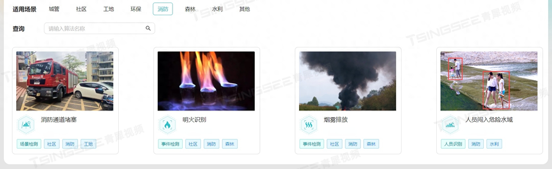 TSINGSEE青犀AI智能分析网关的烟火识别算法,可以涵盖在生活中的各个场景,可快速接入安防视频监控系统EasyCVR平台,将算法配置到平台中,实现实时观看、点播、直播、轮巡等功能,减少火灾安全,降低消防压力,提升消防效率,最大限度做到降本增效。