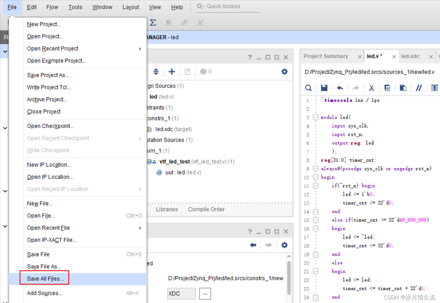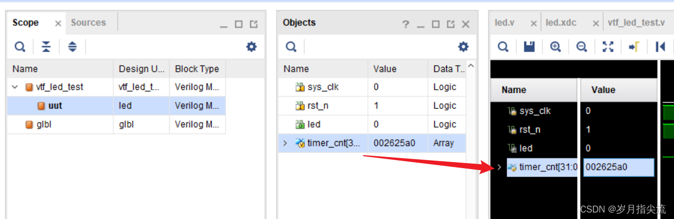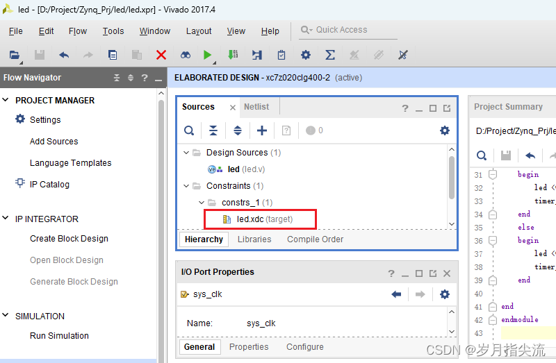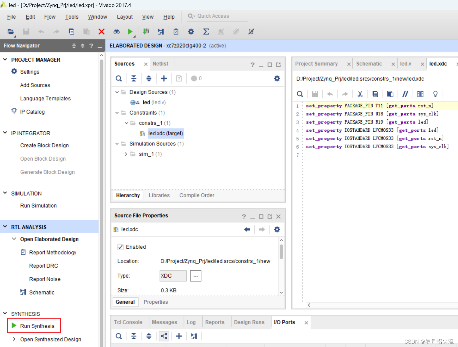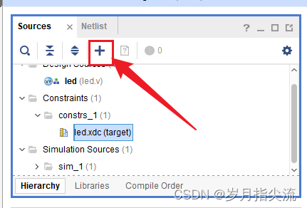 此刻我们在这里可以看到多了一个 led.xdc