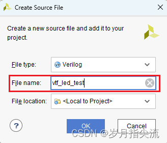 ④、在弹出的窗口输入 File name 为 vtf_led_test