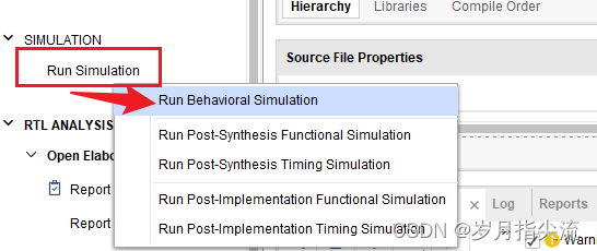 7、进行仿真,左键 Run Simulation -> Run Behavioral Simulation 进行行为级仿真