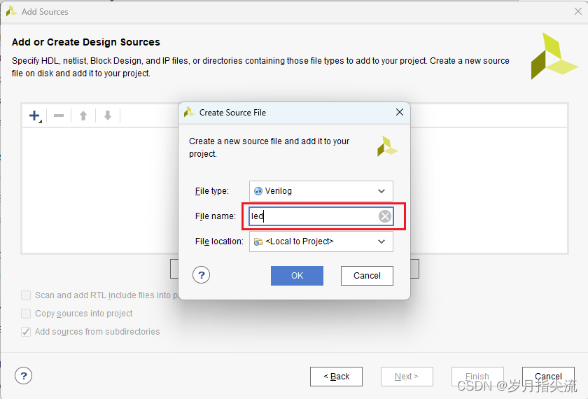 4、文件名 “File name” 设置为 “led”,点击 “OK”